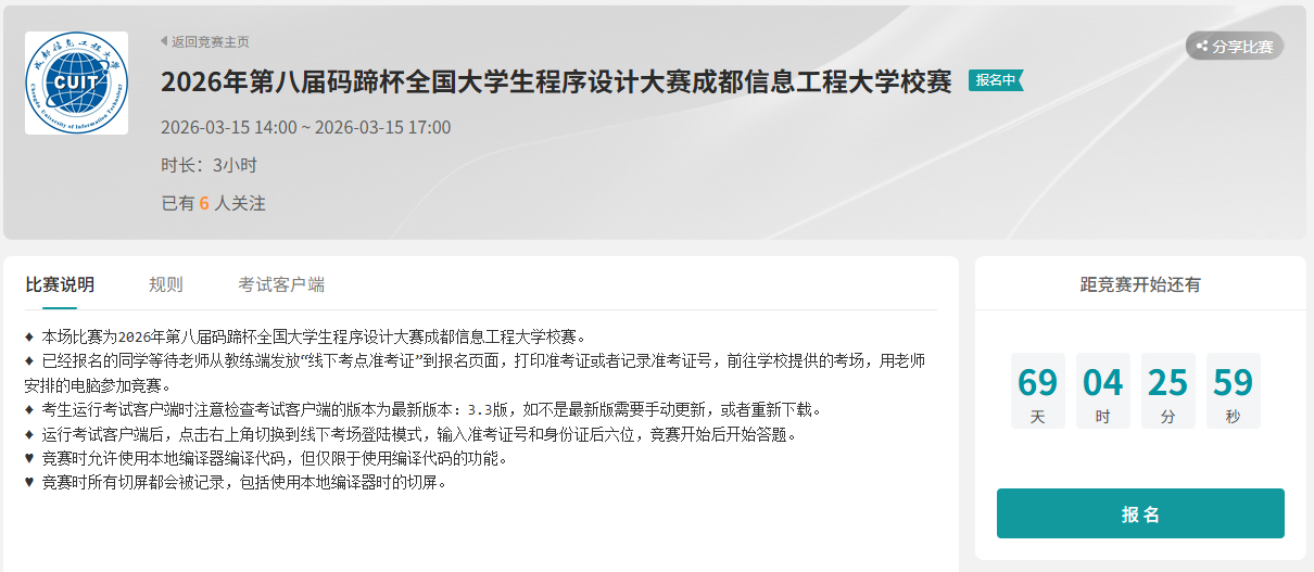 4.择优推荐获奖选手参加2026年第八届码蹄杯全国大学生程序设计大赛。
